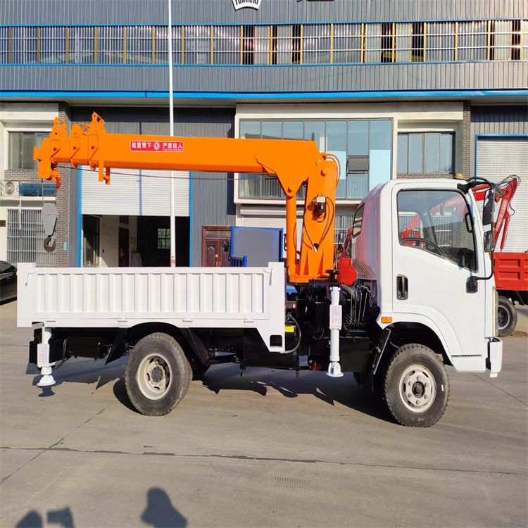 盘山县重汽豪曼小型四吨直臂蓝牌随车吊厂家 起重机价格
